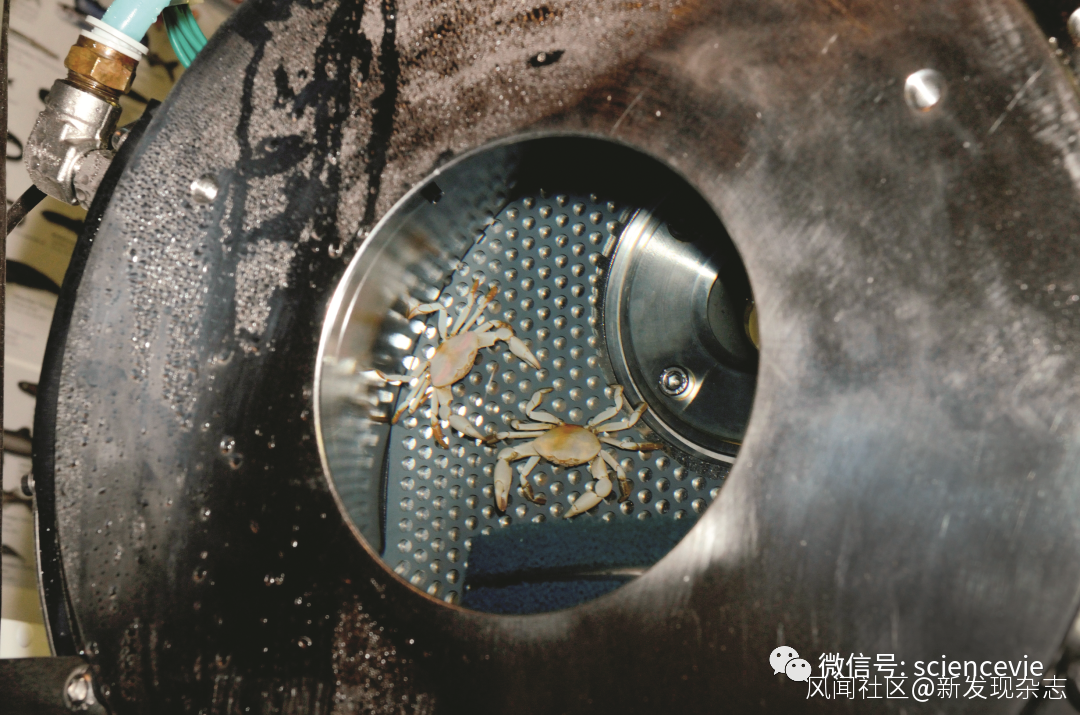 鑑於此次行動沒有陳例可循,整個團隊都格外謹慎,僅把目標鎖定在較為強壯的甲殼類物種上,因為這類動物的抗減壓能力通常要比魚類強。然而,用機器人的機械手抓一隻蝦或螃蟹的難度就好比用筷子抓住一隻在空中亂飛的蒼蠅!研究人員只能另想辦法。他們發明了一款“吸蝦器”(見下方照片):一根水管,一個水泵,還有一個小桶用於收容吸進來的小蝦小蟹。而捕捉螃蟹就要用到蟹簍了,那是一個擱在水底,用誘餌吸引獵物的陷阱裝置。但是到底用什麼誘餌吸引螃蟹呢?深海螃蟹到底喜歡吃什麼呢?“我們把船上的廚房翻了個底朝天!只要是能找到的食物,不論是魚還是肉,甚至罐頭肉醬都逐一被用來嘗試!”團隊成員朱麗葉·拉沃(Juliette Ravaux)介紹道,“知道最理想的誘餌是什麼嗎?居然是經過特殊處理的生牛肉!我把生牛肉放在太陽底下曬了幾小時,因為味道難聞,大家都討厭死我了,但是深海螃蟹卻對此情有獨鍾!”