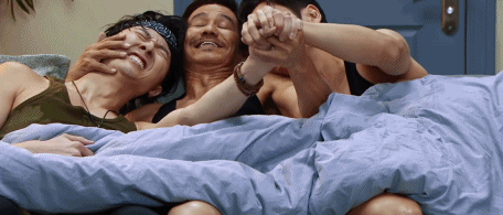 請欣賞,父女三人的沙發對談,AKA,大型雙標現場。