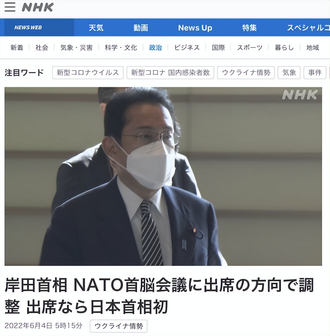4日,日本媒體“共同社”與NHK均披露稱,日本首相岸田文雄將出席即將在西班牙召開的北約峯會。雖然此前日本官方僅承認岸田文雄將出席6月26日在德國召開的七國集團首腦會議,但經過協調後已基本可以確定隨後他還將前往西班牙,出席6月29日召開的北約峯會。作為非北約成員國參與如此重要的會議,只有一種解釋,日本正試圖成為其中一員,哪怕是非正式成員。