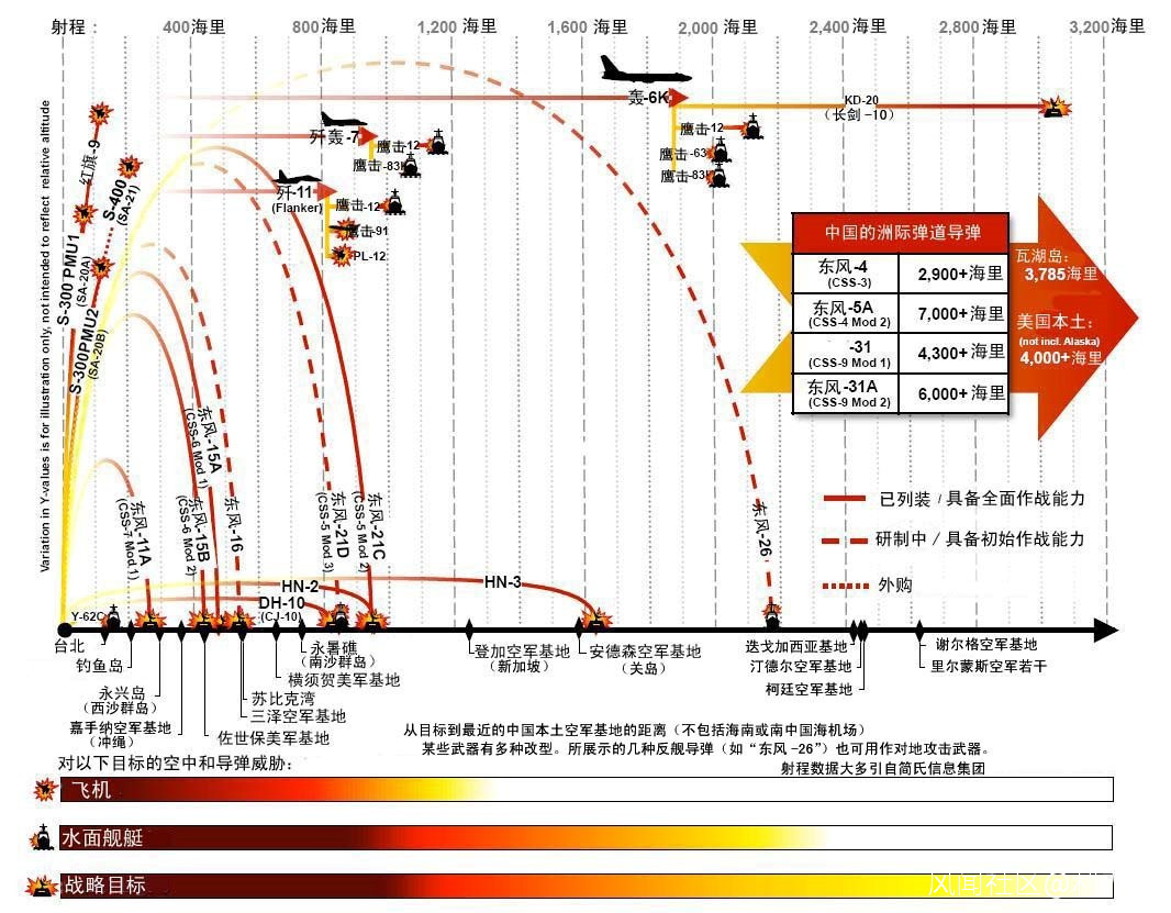 ▲2016年美方公佈的中國陸基導彈“威脅”
