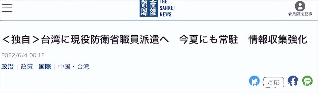 但這仍未結束,有消息顯示日本甚至已開始着手強化對台情報收集能力,這一消息背透露後出的武力干涉信號已非常明顯。6月4日,日本《產經新聞》爆料,近期日本政府已決定向“日本台灣交流協會”台北事務所派遣現職防衞省官員,雖然考慮到中日關係,日方派遣的防衞省官員將以文官為主,但此次派遣目的卻是強化收集情報能力。
