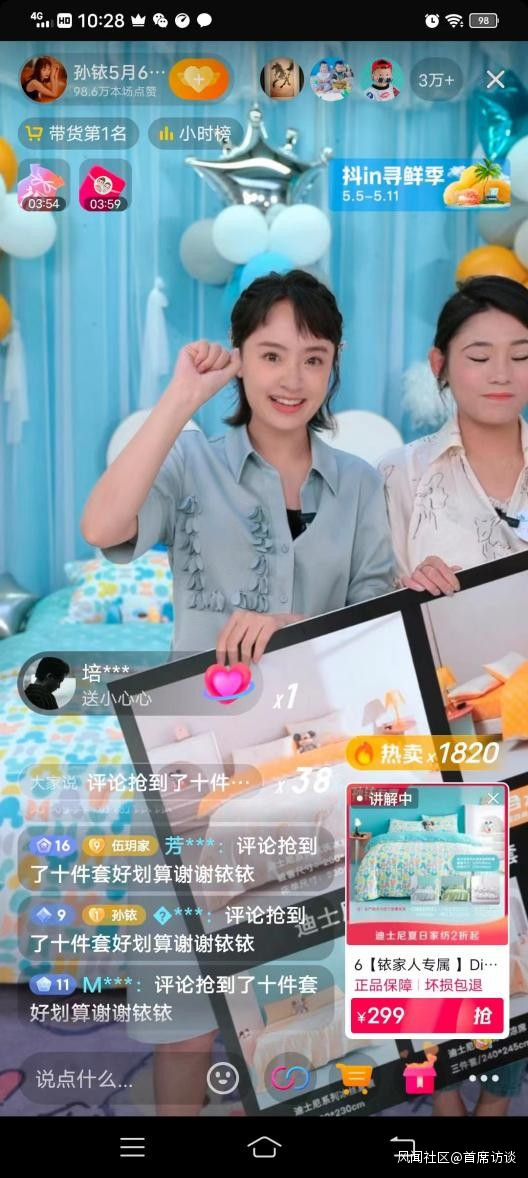 而最近,這位接地氣的明星寶媽嘗試直播帶貨,主打迪士尼的牀上用品,5月5日,孫銥一場直播下來,位居主播帶貨榜第二,GMV為1834.1萬。