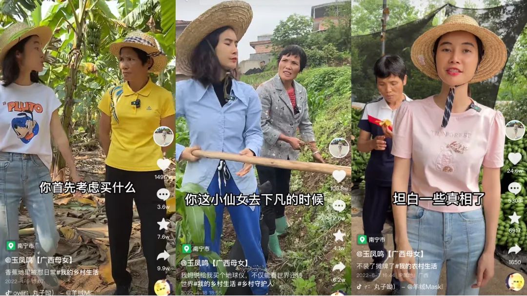 今年1月份,她回到家鄉,一邊幫助母親在田間地頭砍甘蔗,一邊拍起了短視頻。不同於以往展現鄉村田園生活、風光的短視頻,玉鳳鳴將鏡頭對準了她和母親的日常交流,展示農民真實的心裏話。