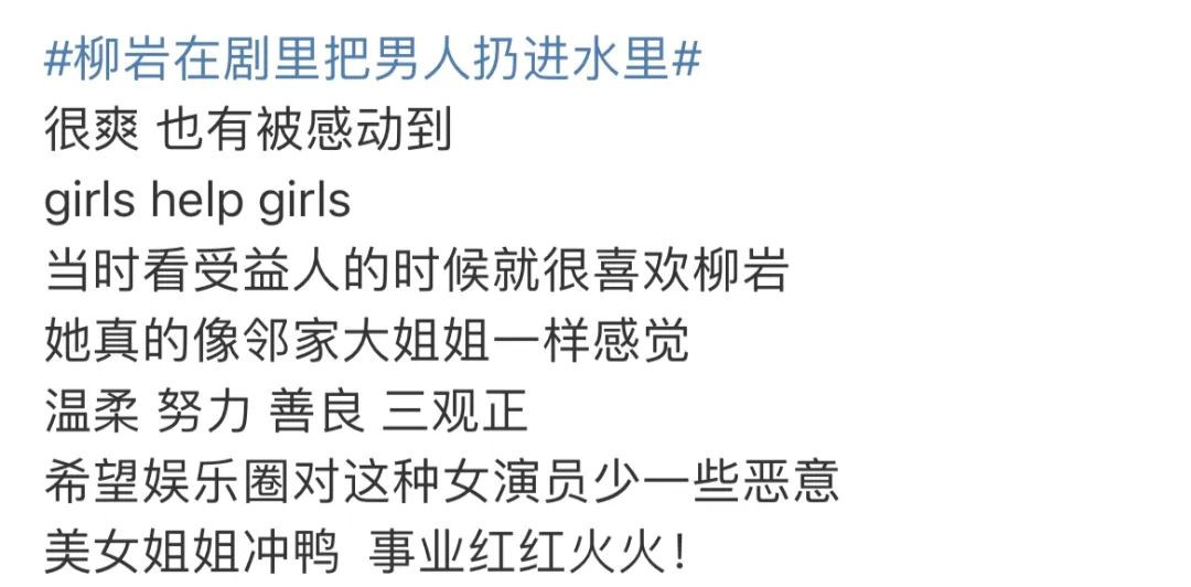 比劇情更爽的,是觀眾在劇外的發言,幾乎所有人都在為柳巖拍手叫好,姐姐這麼多年總算為自己出了一口惡氣了!