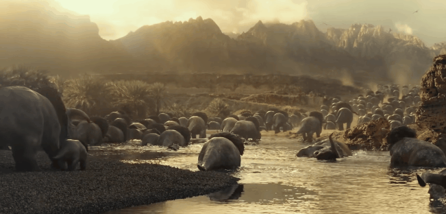 進入城市前,電影直接獻上一段恐龍版《動物世界》。