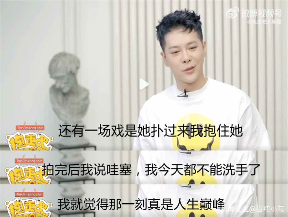 明明要宣傳自己的新劇,他上來就先安利自己偶像的電影,從表演誇到細節,一直誇了三分多鐘。
