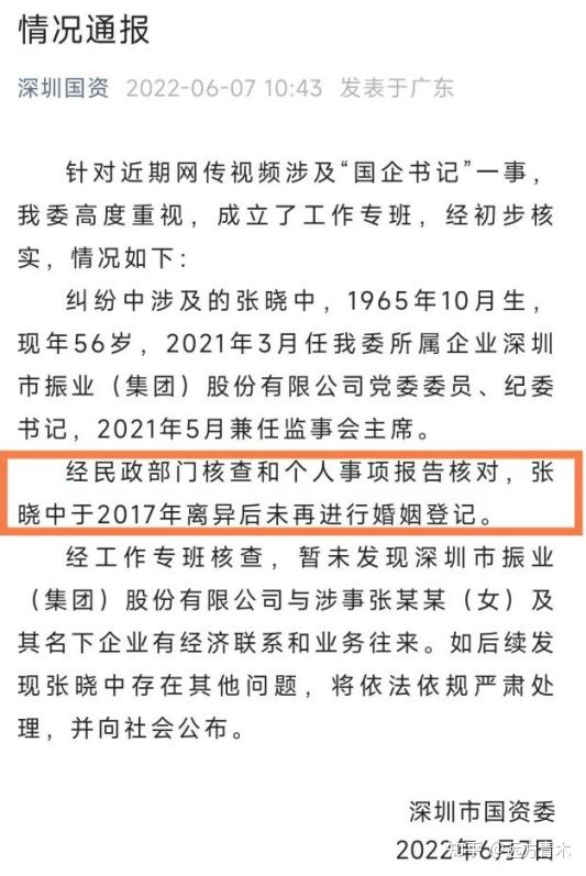 在賓利姐視頻裏被提及的老公張書記,經深圳國資委核實,和賓利姐並非夫妻關係,兩人在談朋友,張書記離婚後從未進行過婚姻登記。