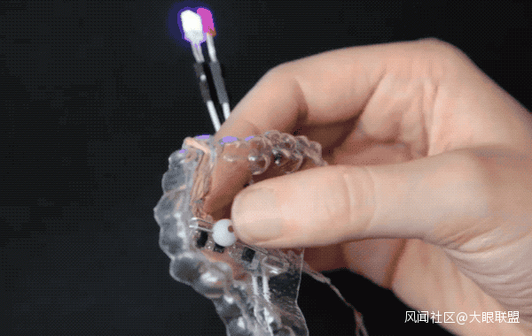 一個是掛在耳朵後面的Wi-Fi發射器,一個是含在嘴巴里的牙科保持器,保持器的底部還有一個帶磁鐵的小球。