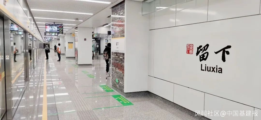 其中,留下站站點以“古鎮風情”為主題,強調地域特色,以民居木構架廳堂為裝飾特點,將民居白牆黑瓦引入牆面,站廳中部營造民居大廳的氛圍,站廳立柱局部裝飾為復古樸拙的磚瓦牆,別具古鎮風情。