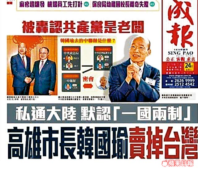 港台媒體隨即大肆渲染韓國瑜出賣台灣,支持一國兩制。