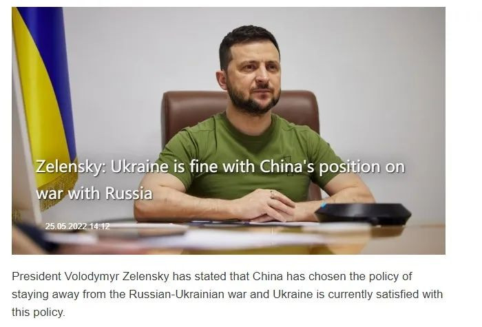 5月25日,澤連斯基在達沃斯論壇視頻演講中也曾表示,中國在俄烏衝突上採取了不捲入的做法,沒有對烏採取敵對動作,也沒支持俄羅斯聯邦。