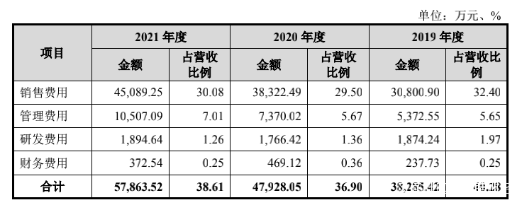 其中,廣告宣傳費分別為1.87億元、2.37億元和2.67億元,分別佔當期銷售費用(執行新收入準則)的60.84%、74.93%和68.37%,以及當期營收的19.72%、18.27%和17.85%。