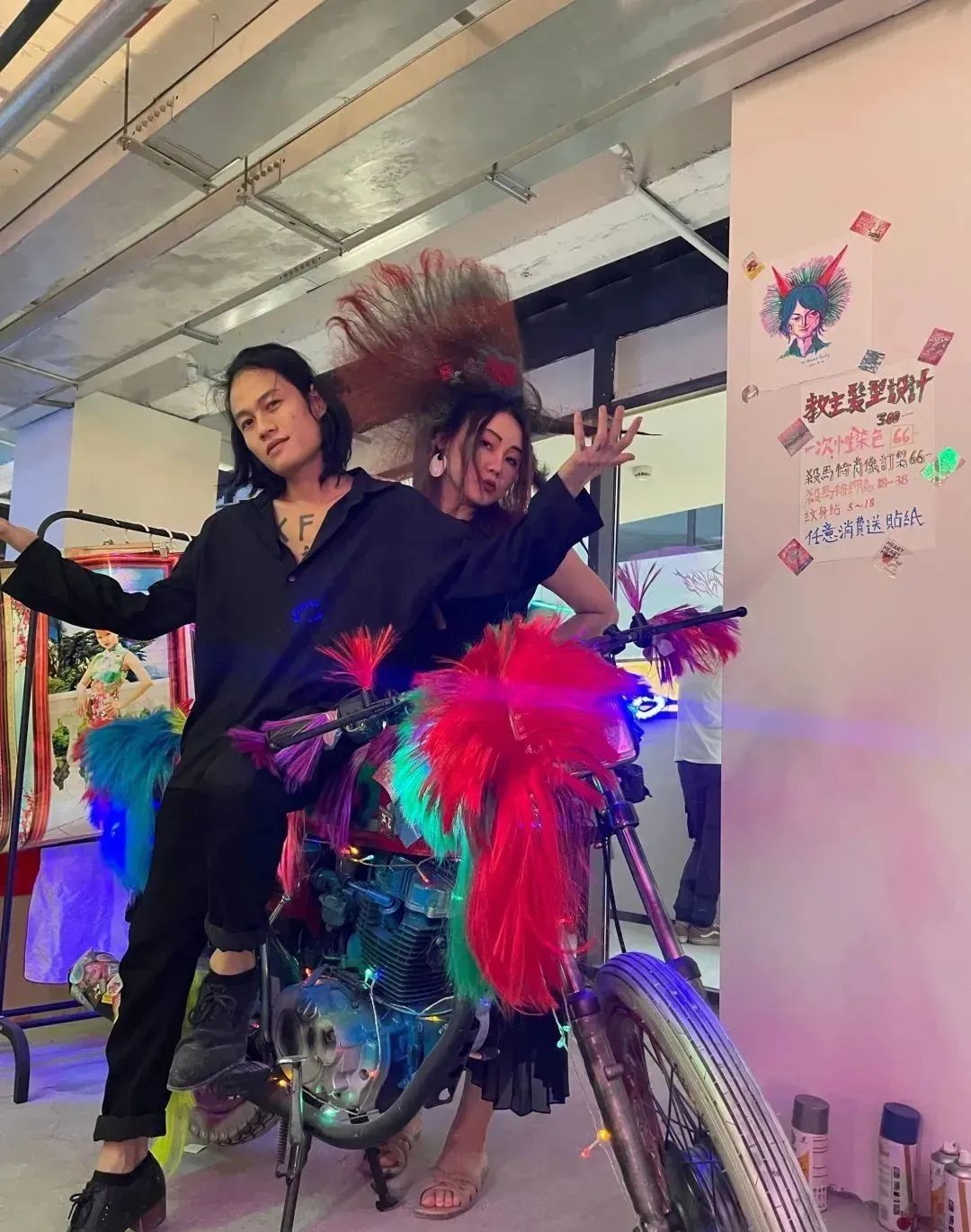 去年,羅福興在北上廣,接連舉辦幾場殺馬特髮廊快閃體驗店,吹一個造型定價300元。在髮廊的牆上,他寫道:“頭髮也是一種表達”。