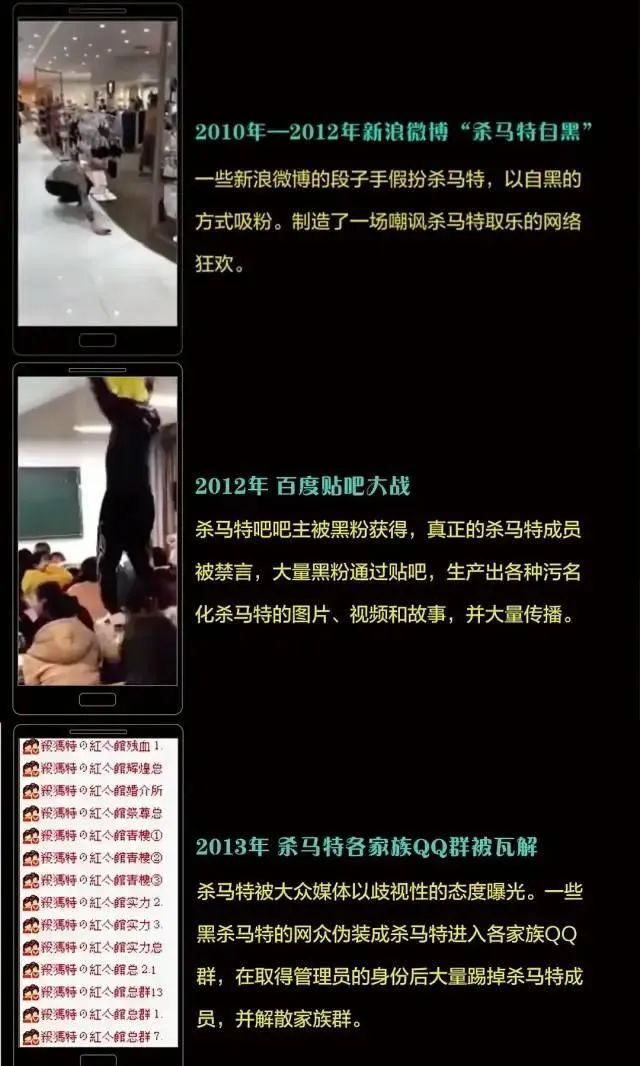 一批假殺馬特們,以自黑的方式,挑起網絡狂歡,引起大眾對殺馬特的不滿。網絡上爆發大規模的「反殺馬特運動」,殺馬特們遭受到大量的謾罵和攻擊,敵意蔓延到線下。