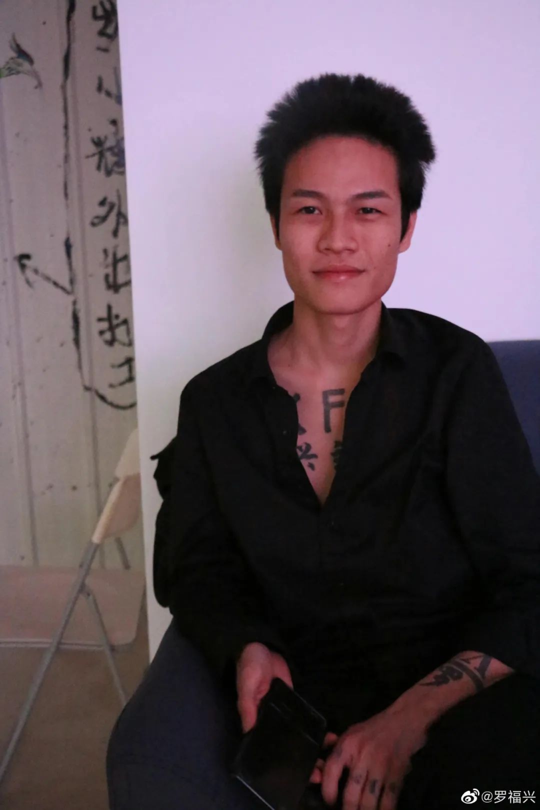 彼時的羅福興,留着利落的黑色寸頭,穿着簡單的黑色襯衫,看起來只是一個普通的小鎮青年,身上絲毫沒有“殺馬特的痕跡”。