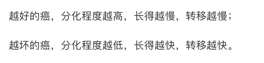 而低分化癌,則是把癌症比作壞人,分為三六九等,有的一點點壞,有的非常壞、窮兇極惡: