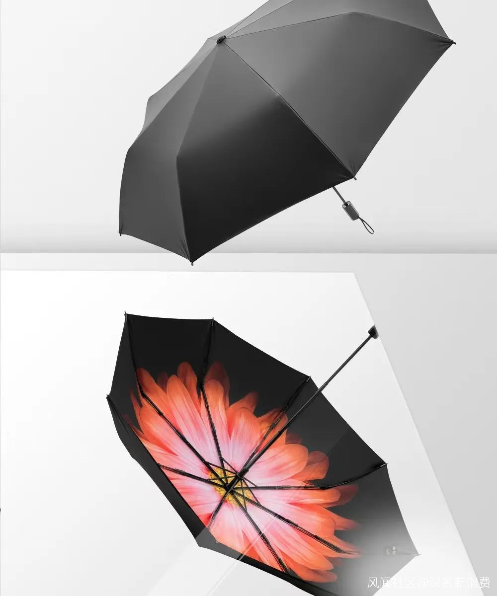 2013年,城市女性的護膚意識增強,對紫外線防護的需求不斷攀升,但市面上的傘以遮雨為主要功能,並不強調防曬效果,不少女性消費者只能用雨傘代替遮陽傘。在觀察到需求與供給的不平衡後,蕉下推出了第一款防曬產品雙層小黑傘,並帶動了整個防曬傘市場的增長。在九年時間裏,蕉下實現了“品-品類-品牌”的躍遷,建立起“防曬=蕉下”的品牌關聯。