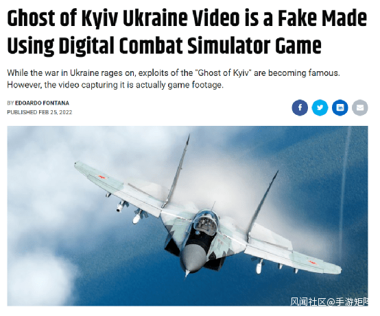 除此之外,在烏克蘭戰爭打響後,外網也開始流傳起關於一名烏克蘭精英飛行員的傳説,據説這位飛行員創下了不少戰績,被外網的許多網友稱為“基輔幽靈”。後來,在推特上也出現了據稱是基輔幽靈出擊的抓拍影像,同樣也被廣泛傳播,然而最後這段錄像也被證實是來自飛行模擬遊戲《DCS》的遊戲畫面。
