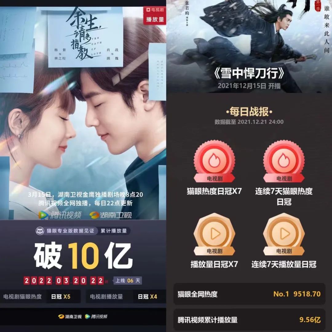 不上星的網播劇就比較麻煩。就在14日晚,騰訊突然取消了播放量,以熱度代之。看似走上了愛奇藝、優酷同一個計量體系,但動不動破萬的熱度值,又讓人看不明白。這時候,第三方平台數據就顯得重要了,目前各路數據榜單不下十個。比如貓眼、燈塔、雲合、骨朵、藝恩、德塔文、Vlinkage等。