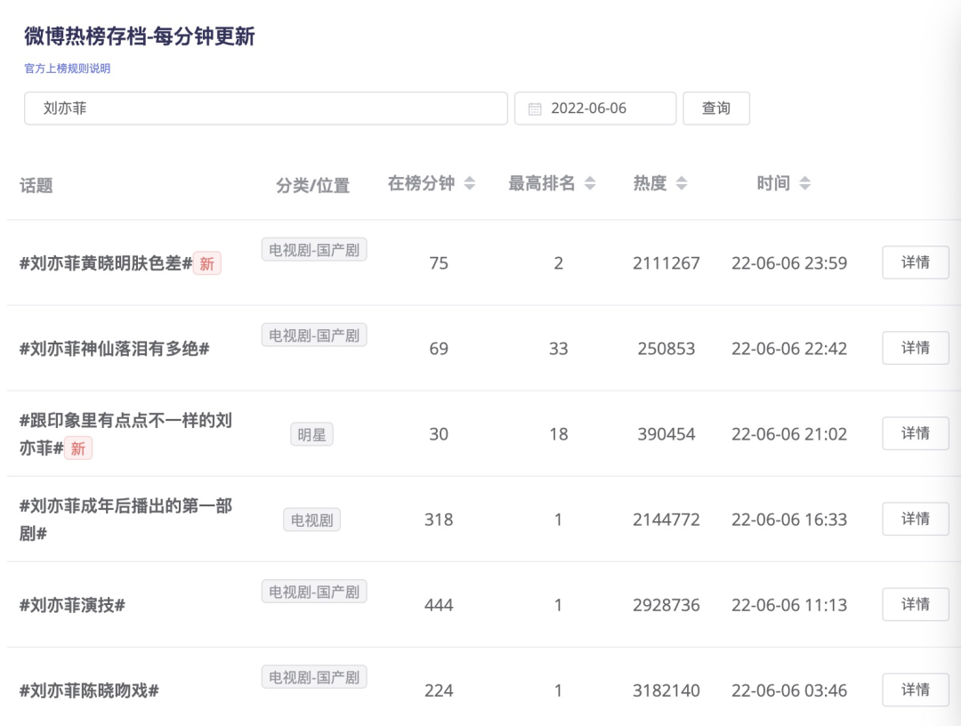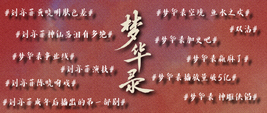 6月2日至4日,每天以#夢華錄#為關鍵詞的熱搜就多達12條,6月5日更是高達18條,加上劉亦菲的單人熱搜4條,陳曉的單人熱搜2條,單日峯值24條,在今年播出劇集裏排第二,僅次於《開端》播出第8日的26條。