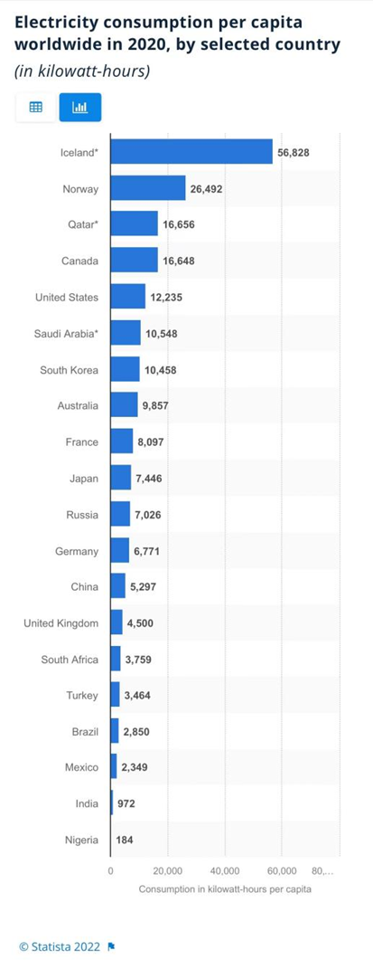 比如從電力消耗來看,中國家庭的平均用電遠遠低於發達國家。而那些掌握了國際話語權,把“綠色環保”時刻掛在嘴邊的國家,反而有着超高的人均用電量。