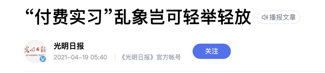 但兩年過去後,相關行業反而發展越發壯大了。在今年畢業季來臨季,光明網、人民資訊連發數條相關新聞,警示“付費實習”盤剝大學畢業生。