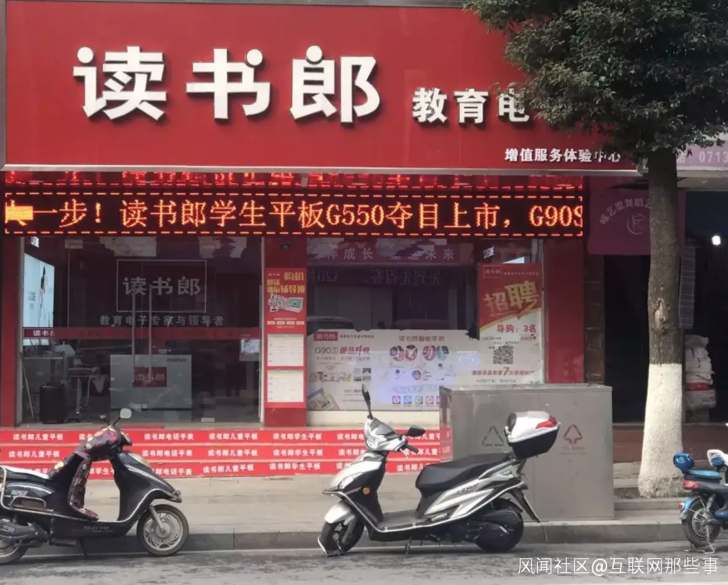早年間讀書郎“小呀嘛小兒郎,讀書就用讀書郎”的廣告在電視台黃金時段洗腦式滾動播放,線下經銷商多選址學校附近商圈,一邊給家長販賣焦慮一邊給孩子灌輸品牌意識。