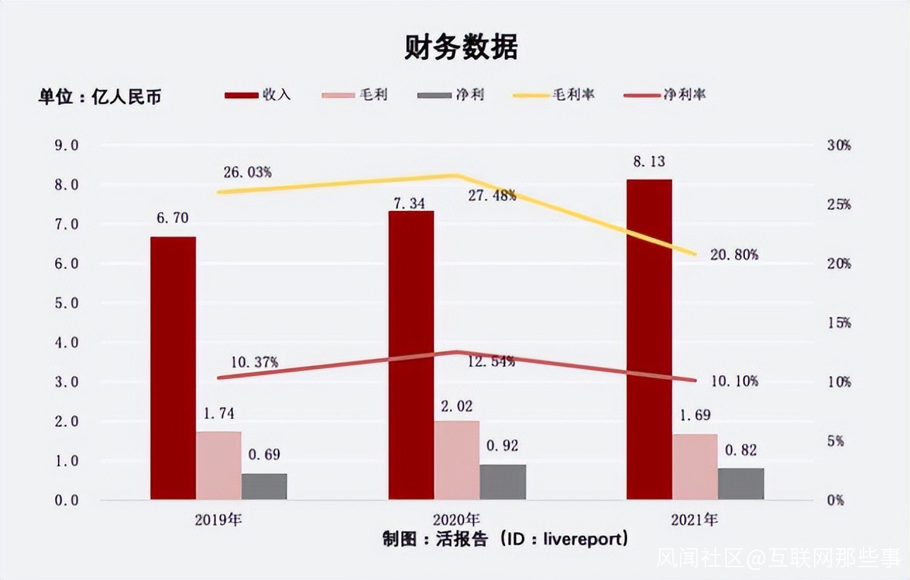 2019年至2021年,讀書郎實現營業收入分別為6.7億元、7.34億元、8.13億元;毛利分別為1.74億元、2.01億元、1.69億元;淨利潤分別為6943.5萬元、9201.3萬元、8214.6萬元。輿論給出讀書郎“增收不增利”的評價相當準確。