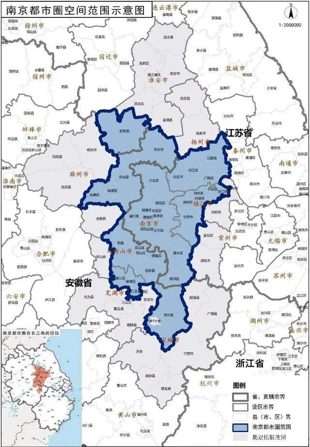 作為全國第一個獲批的跨省都市圈,南京都市圈不僅囊括了江蘇4個地市,而且還將安徽的馬鞍山、滁州、蕪湖、宣城等納入輻射範圍。(參閲《官宣!第5個國家級都市圈來了》)