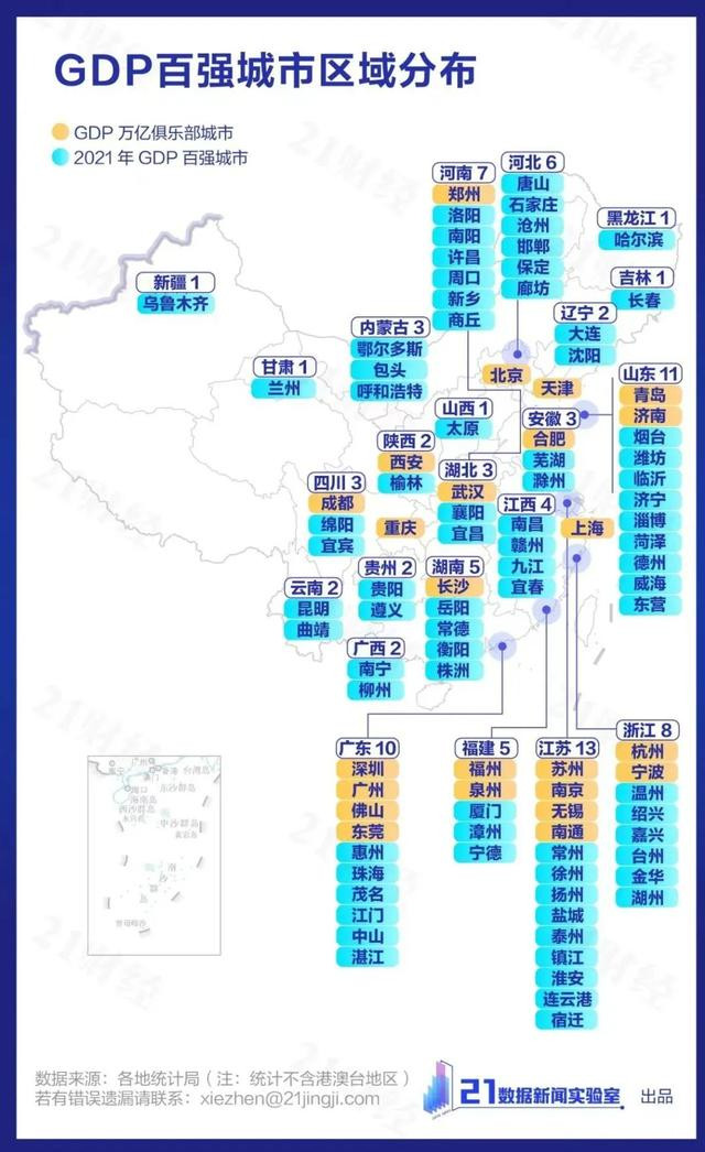 數據顯示,2021年,山東16個地市中,共有11個躋身全國百強,總量僅次於江蘇,超過廣東。(參閲《中國百強市、百強區、百強縣排行》)