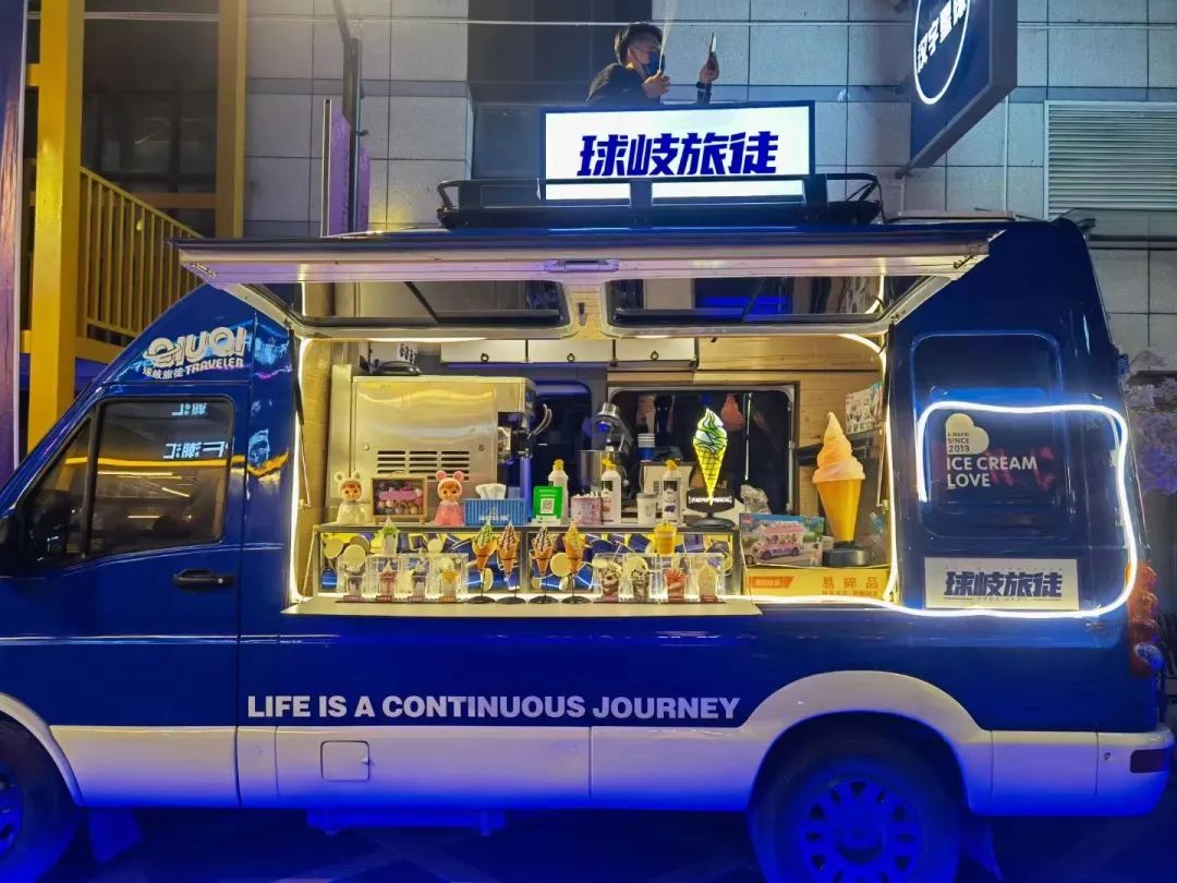 球岐旅徒創始人度文,做冰淇淋車8年了,高峯期擁有8輛車,是一個地地道道的“擺攤老炮”。