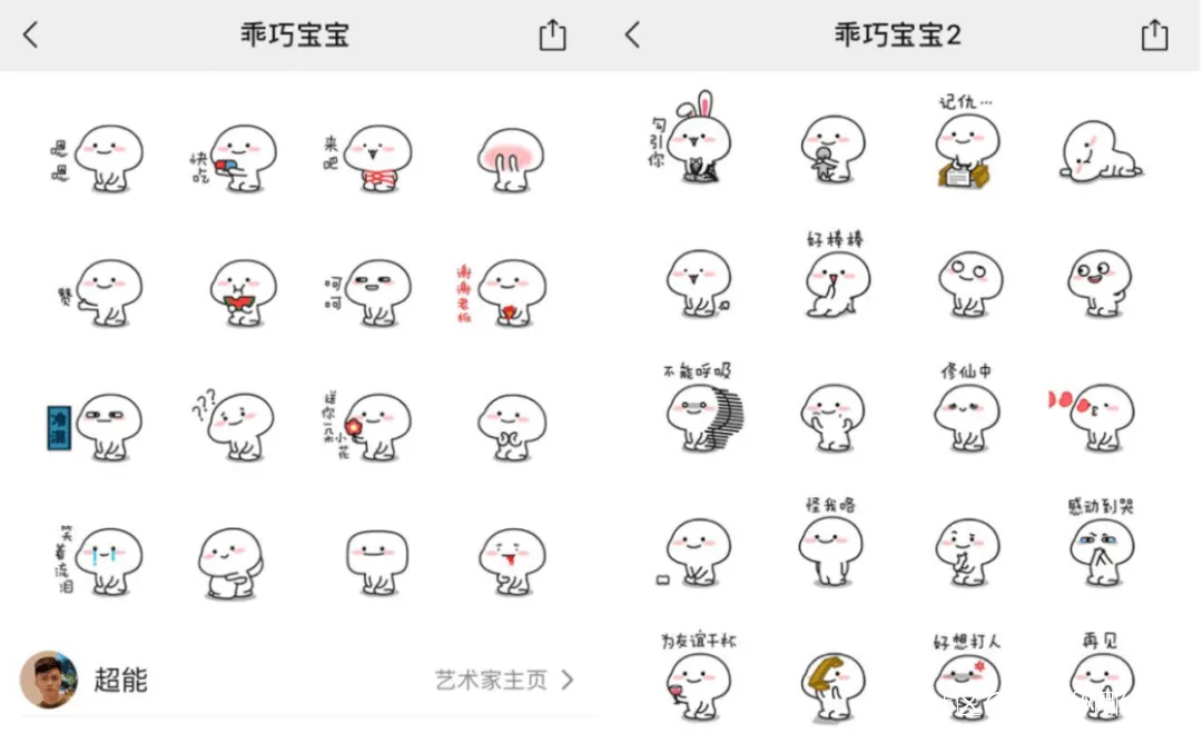 譬如2017年微信表情包中,“乖巧寶寶“兩年內的下載量達到1.5億次,兩年收到打賞50萬,作者鍾超能成為紅人,甚至辭掉了本身動畫設計師的工作。