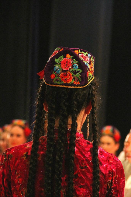 相信大家對新疆姑娘花帽下的小辮都不陌生,一條、兩條……數條甚至十幾條,長至及腰甚至及腳踝,隨着少女輕盈的步伐在她的肩頭與裙襬之間晃動,烏黑的秀髮在陽光下煥發光澤。