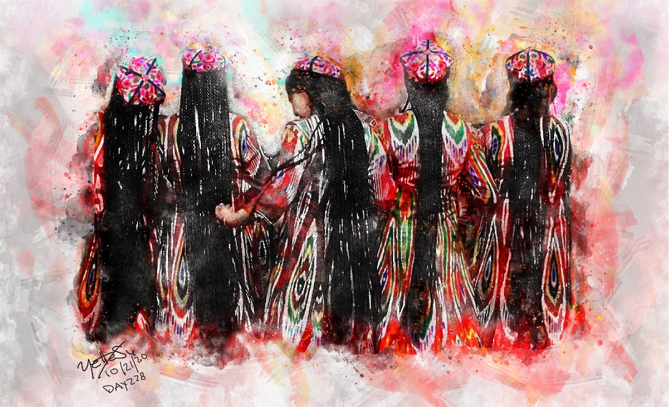 目前似乎只有中老年維吾爾族婦女依然保留着這一傳統的髮式,隨着全球性審美的趨同,網絡文化的興起,生活節奏的加快,年輕女性越來越“潮”,有朝一日這擁有着悠久歷史的花帽下飛揚的小辮是否也會隨着時間的推移而逐漸消失呢?