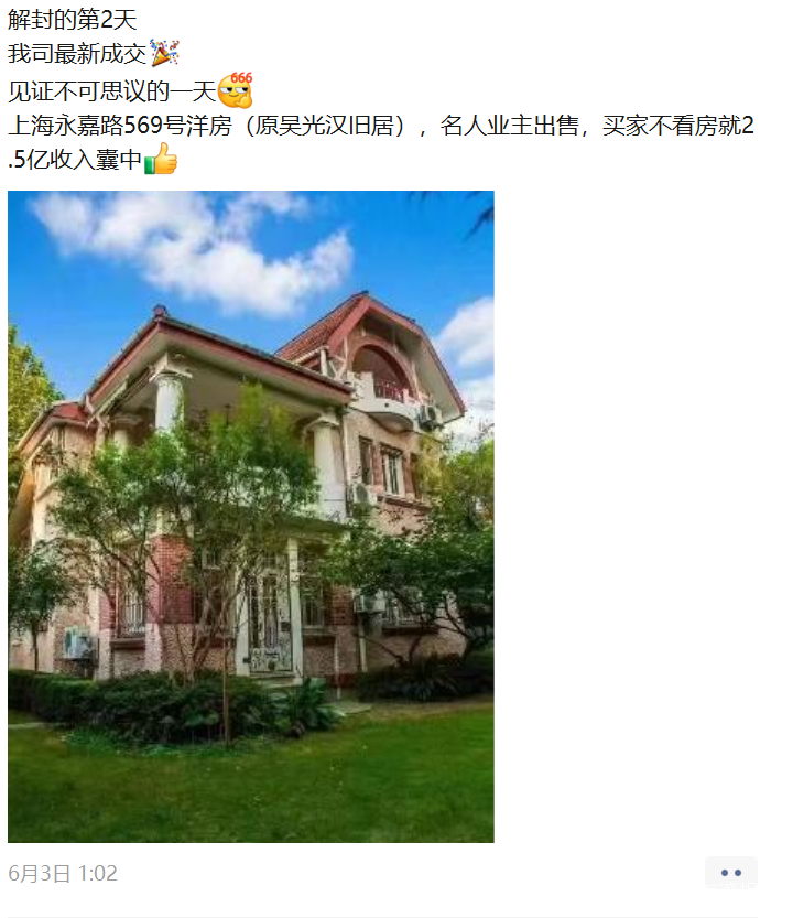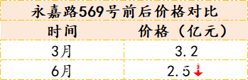 在3月份時,原本稀缺的永嘉路569號總價為3.2億元,但在6月份解封后,它的價格下降了7000萬元