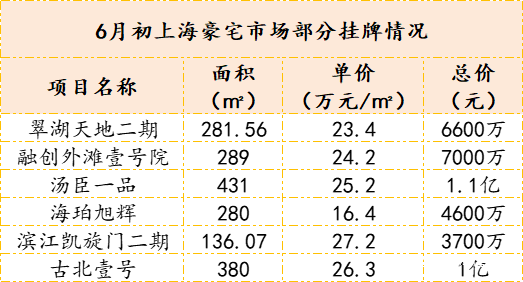 六月初這段時間,據不完全統計,一共成交了超過12套豪宅