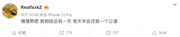 這兩天凌晨又發文,相信老天爺會給他公道。