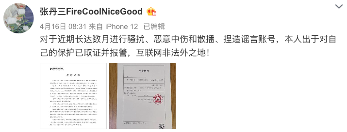 張丹三忍無可忍只能起訴,但根本沒用,瘋狂的籤粉還在持續網暴她。
