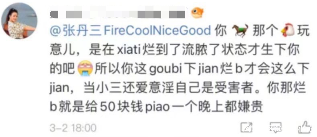 從撕商務到人身攻擊,這些滿嘴噴髒的人追着張丹三不依不饒。
