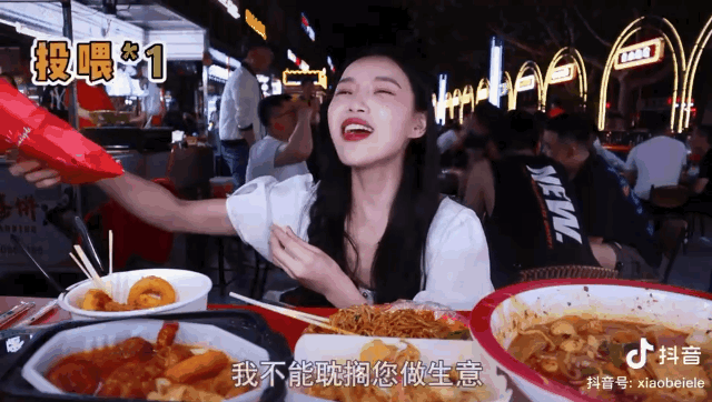 前幾天在夜市,她被幾個“大哥”給圍住起鬨,趕緊趕緊,怎麼不吃。