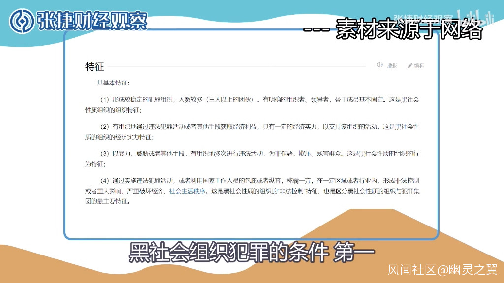 但是你也可以知道,黑社會組織的定義是非常高的。其實真要説打黑除惡,滿足黑社會組織的不容易,我把黑社會組織的定義也給大家念一念。