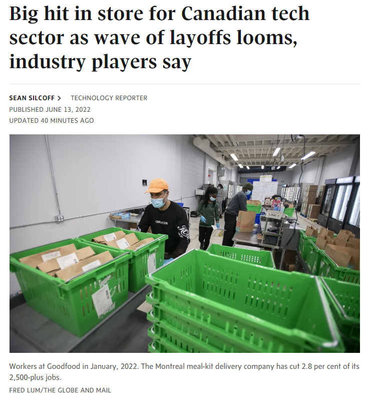 Get ResQ裁員10%——多倫多初創公司Get ResQ Ltd.提供用於管理餐廳維修和維護的數字平台,在2021年籌集$3900萬美元的風險投資。該公司裁員15人,約佔員工總數的10%,以保留現金。首席執行官Kuljeev Singh在電子郵件中説:“這樣,我們就可以專注於投資以良好速度增長的核心業務。”