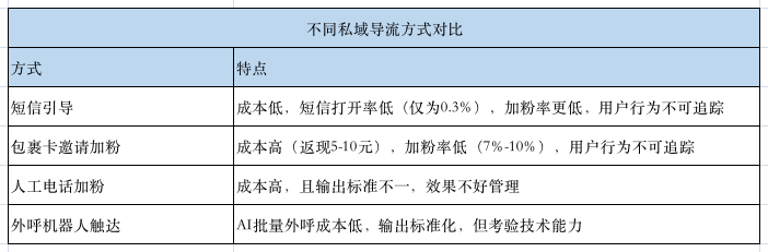 用什麼方式導入私域很關鍵,關乎成本和效率。目前常用方法有幾種,如下圖所示: