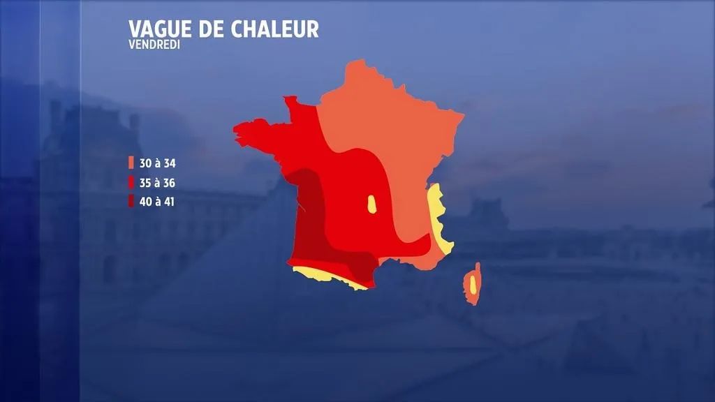 從今日開始法國温度將繼續攀升,明日法國南部一些地區氣温將達到40°C,預計週五和週六為本次熱浪的高峯期,週六大巴黎部分地區氣温有望達到40°C,中部地區和內陸地區氣温或將達到41至42°C。