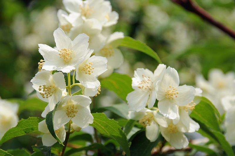 一看枝條:山梅花的小枝條密被毛;太平花的小枝條光滑沒有任何小毛的分佈。