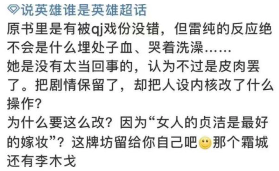 它既不符合時代的價值觀,又不符合原著要表達的江湖豪情。