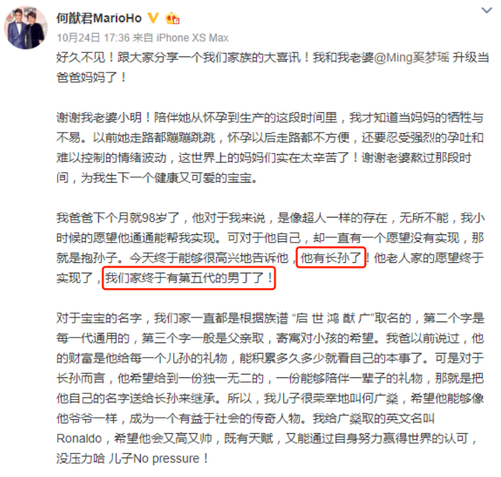 之前奚夢瑤懷孕還沒官宣時,港媒開始報道説,何猷君自曝當爸爸。