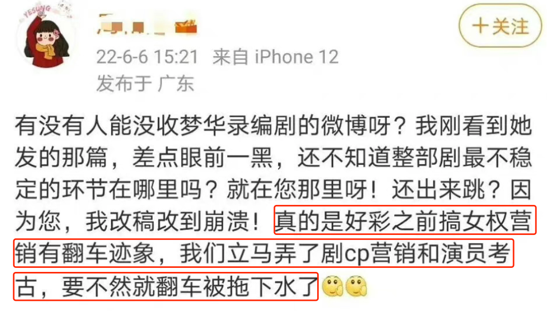 編劇膨脹後,劇宣跳出來怒氣衝衝地把編劇罵了一頓,快歇着吧你,別給這劇的宣傳找麻煩了。