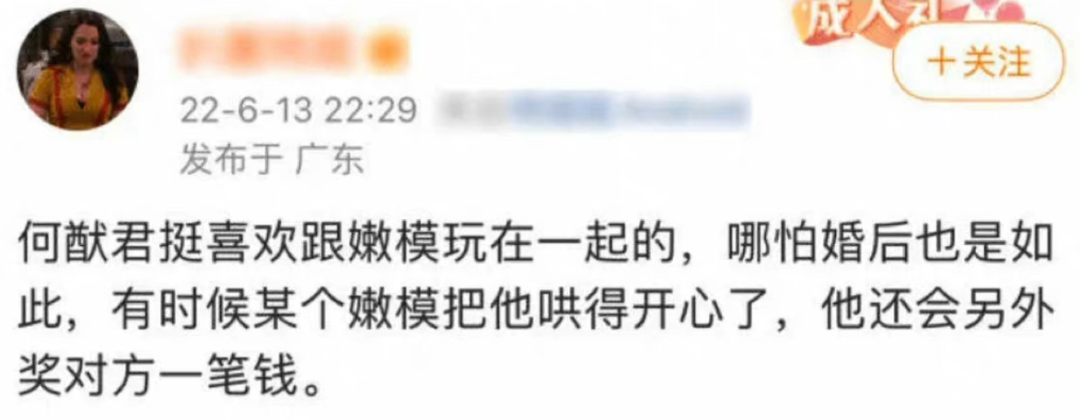 與此同時,網上有人爆料,何猷君很喜歡跟嫩模一起玩耍。