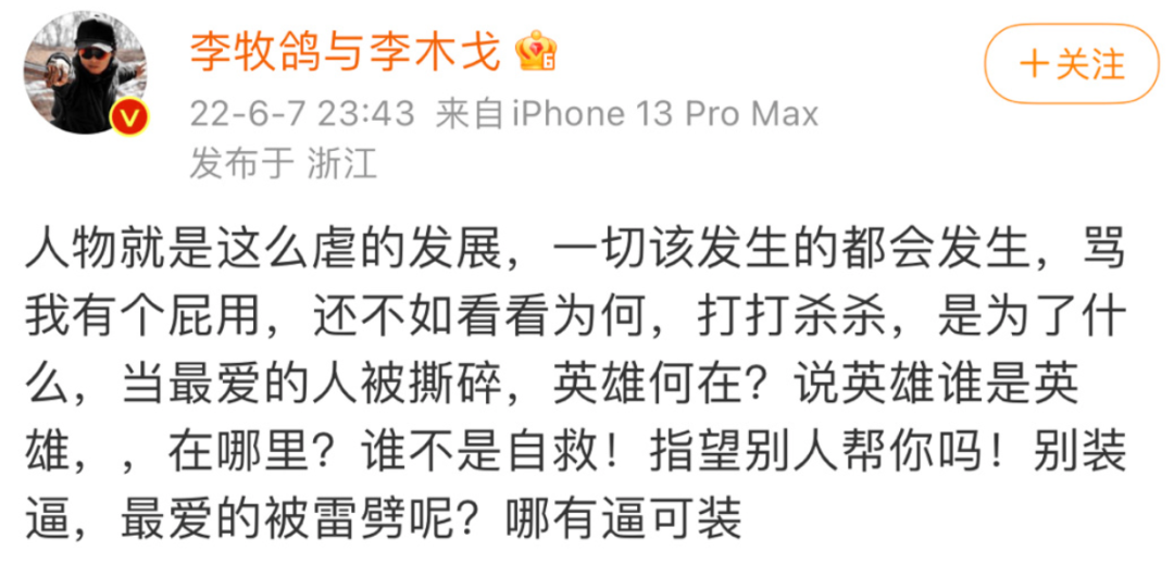 他這個發瘋文學,一氣呵成,情緒遞進,文明優雅,特別適合搬來飯圈懟對家。
